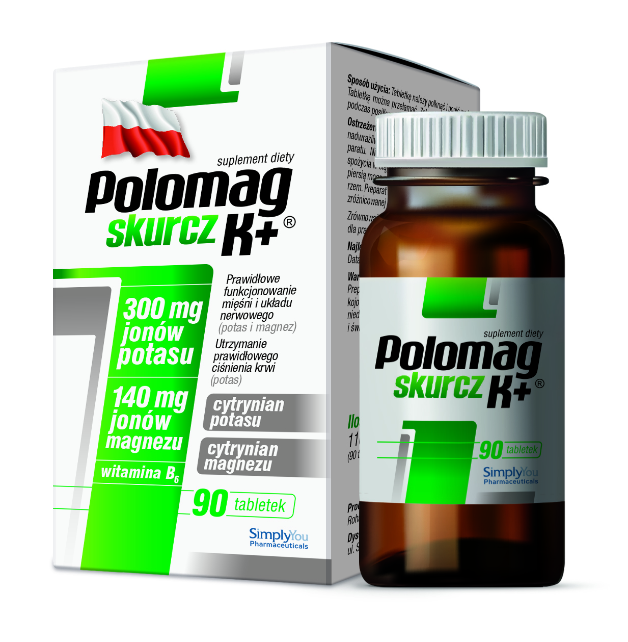 Polomag® K+ to suplement diety uzupełniający poziom magnezu, potasu i witaminy B6 w diecie.